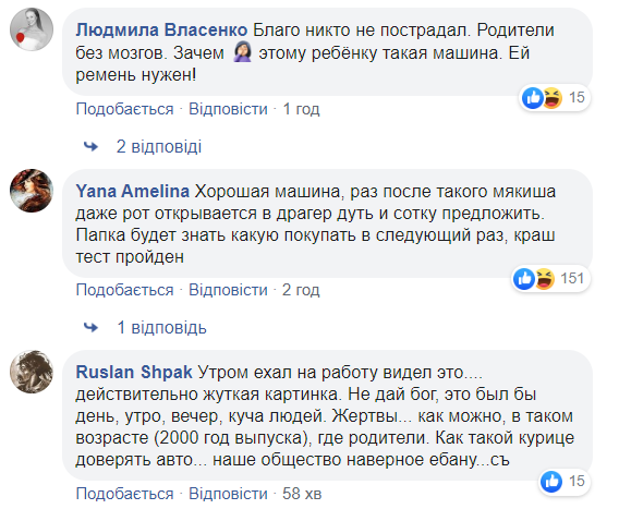 - Благо никто не пострадал. Родители без мозгов. Зачем этому ребенку такая машина. Ей ремень нужен!