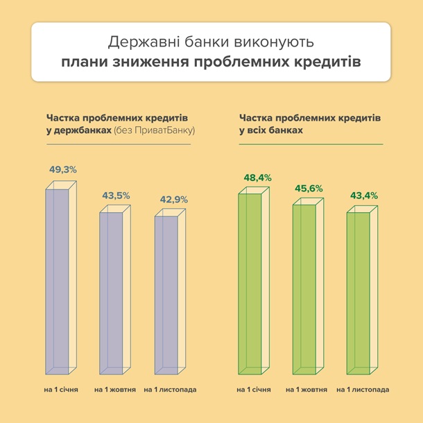 Доля проблемных активов в банковском секторе продолжает снижаться второй месяц подряд. По состоянию на 1 ноября их доля снизилась до 43,4%.